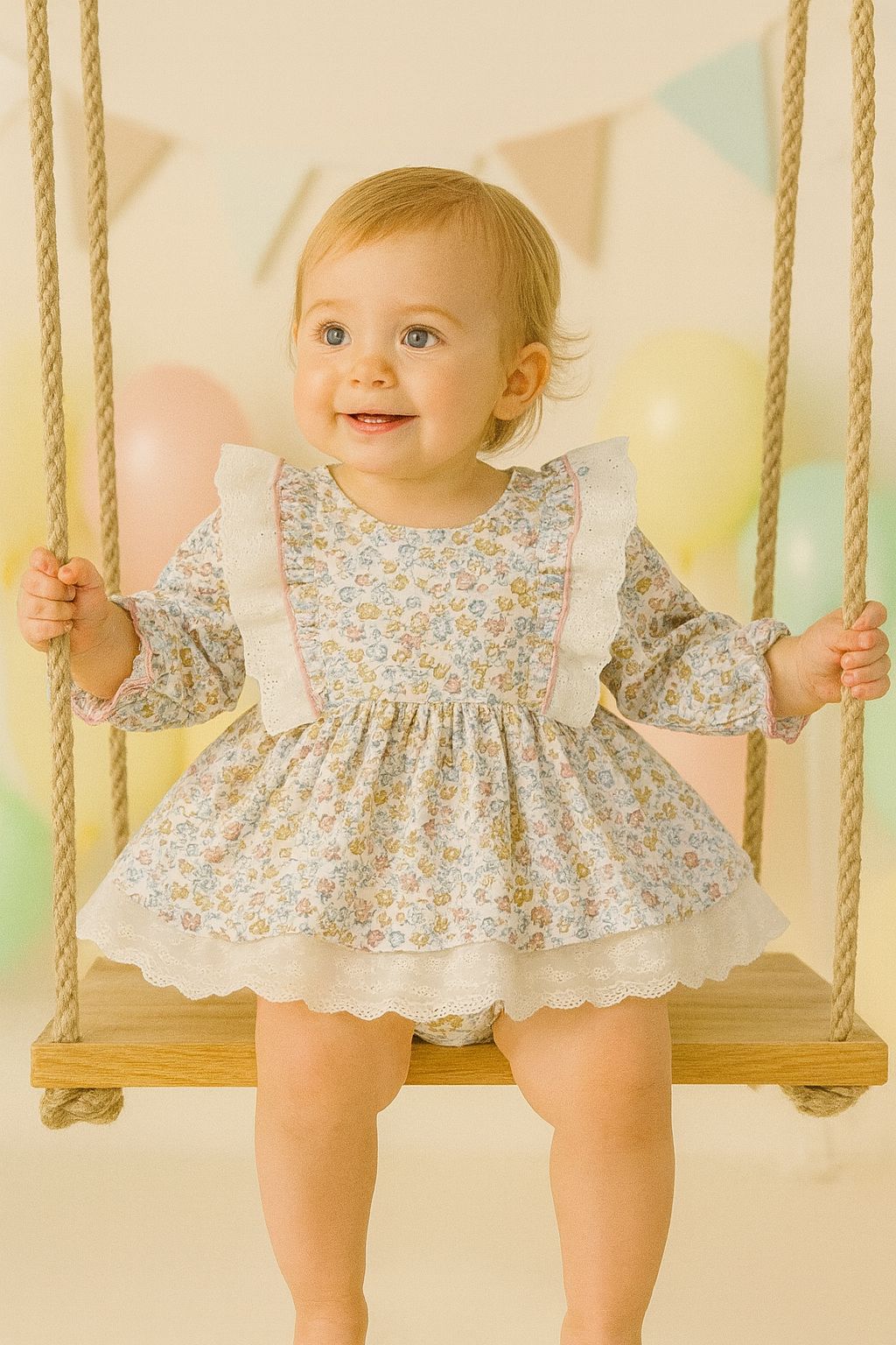 Jesusin + culotte florecitas y tira bordada «FLEUR VINTAGE»