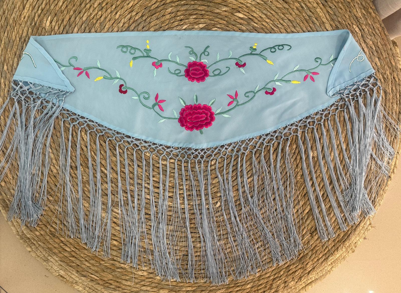 Mantoncillo bordado niña MEDIDAS 88cm x 2cm fleco 24cm