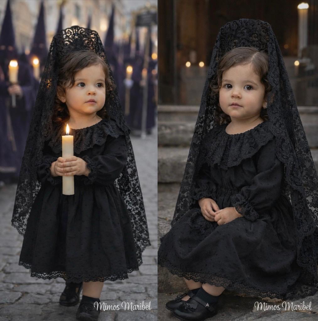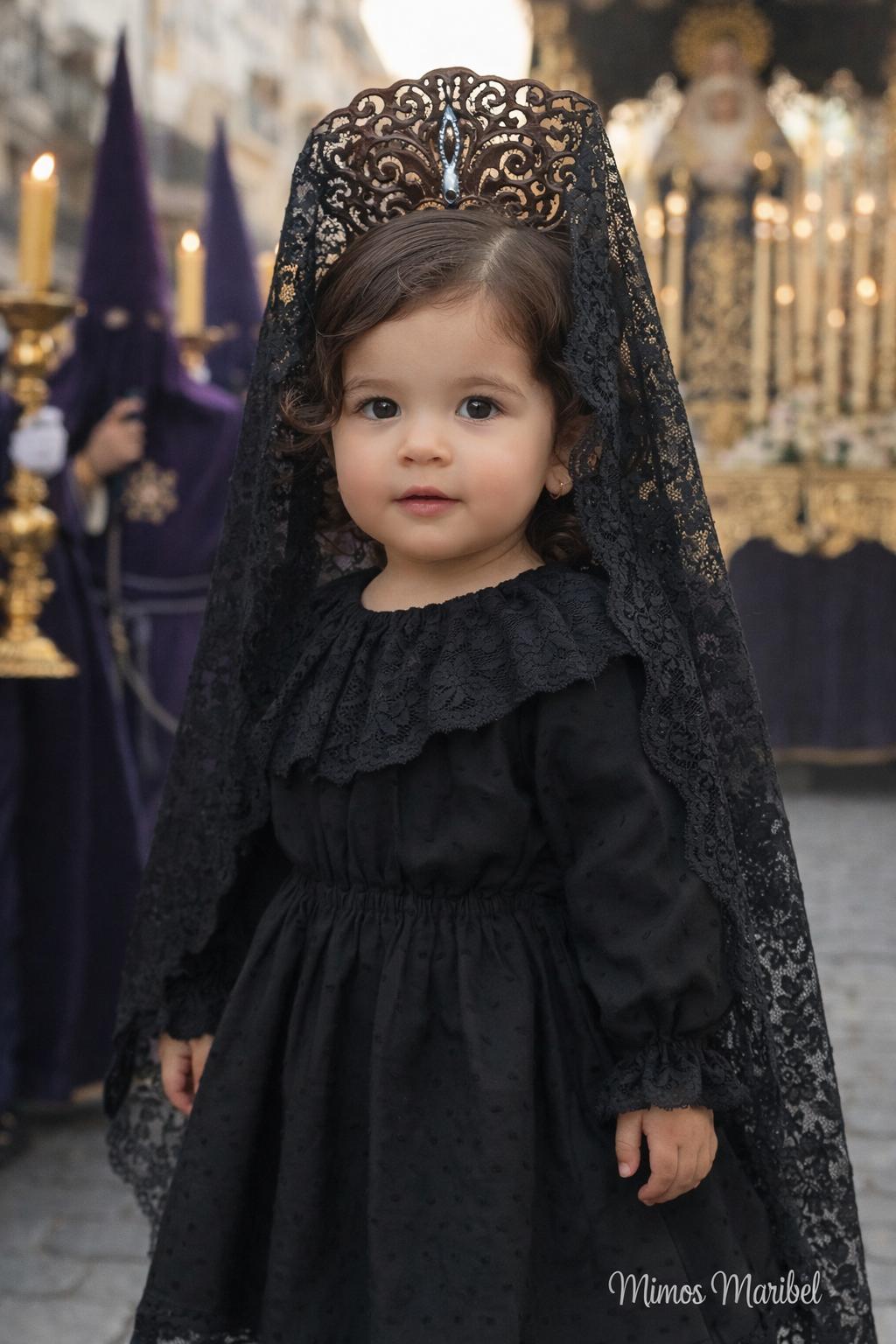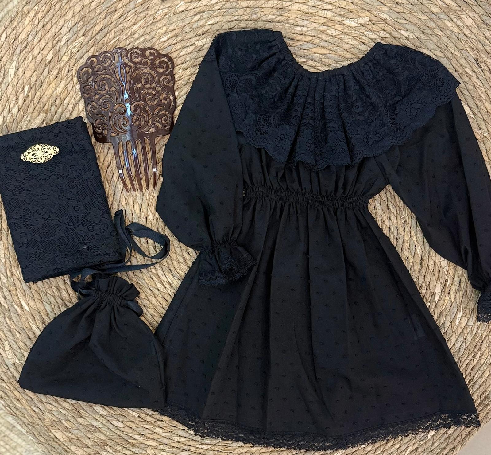 Vestido Mantilla completo con limosnera, peina, mantilla y broche